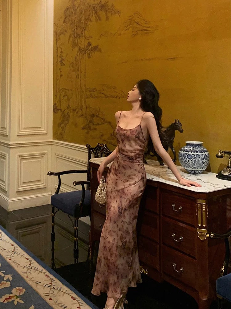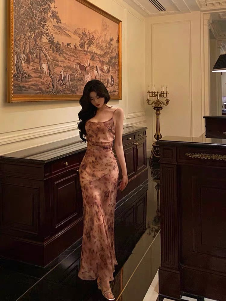 Classy Mermaid Spaghetti Straps Floral Chiffon Prom Dresses Birthday Outfits Evening Gown SD885