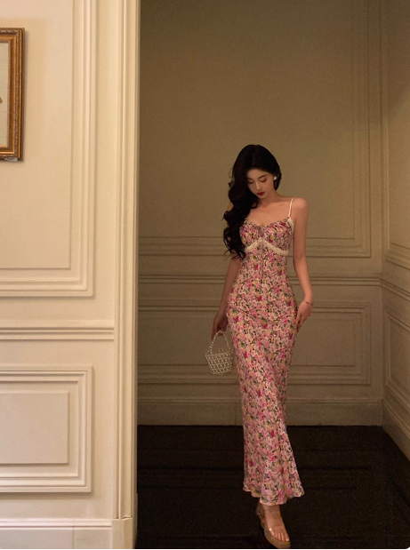 Classy Mermaid Spaghetti Straps Pink Floral Long 18th Birthday Dress Party Gown 21st Birthday Outfits Birthday Dress Ideas For Women DP1313
