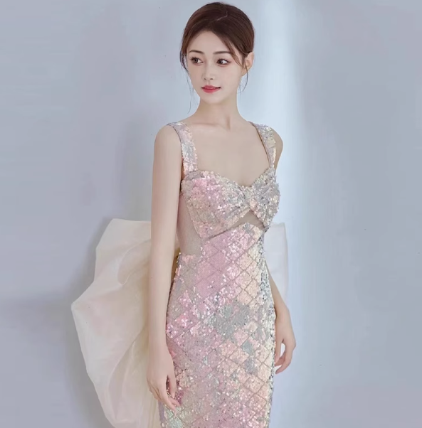 Classy Mermaid Straps Sequin Long Prom Dresses Formal Gown Summer Wedding Guest Dresses Wedding Guest Outfit W0731