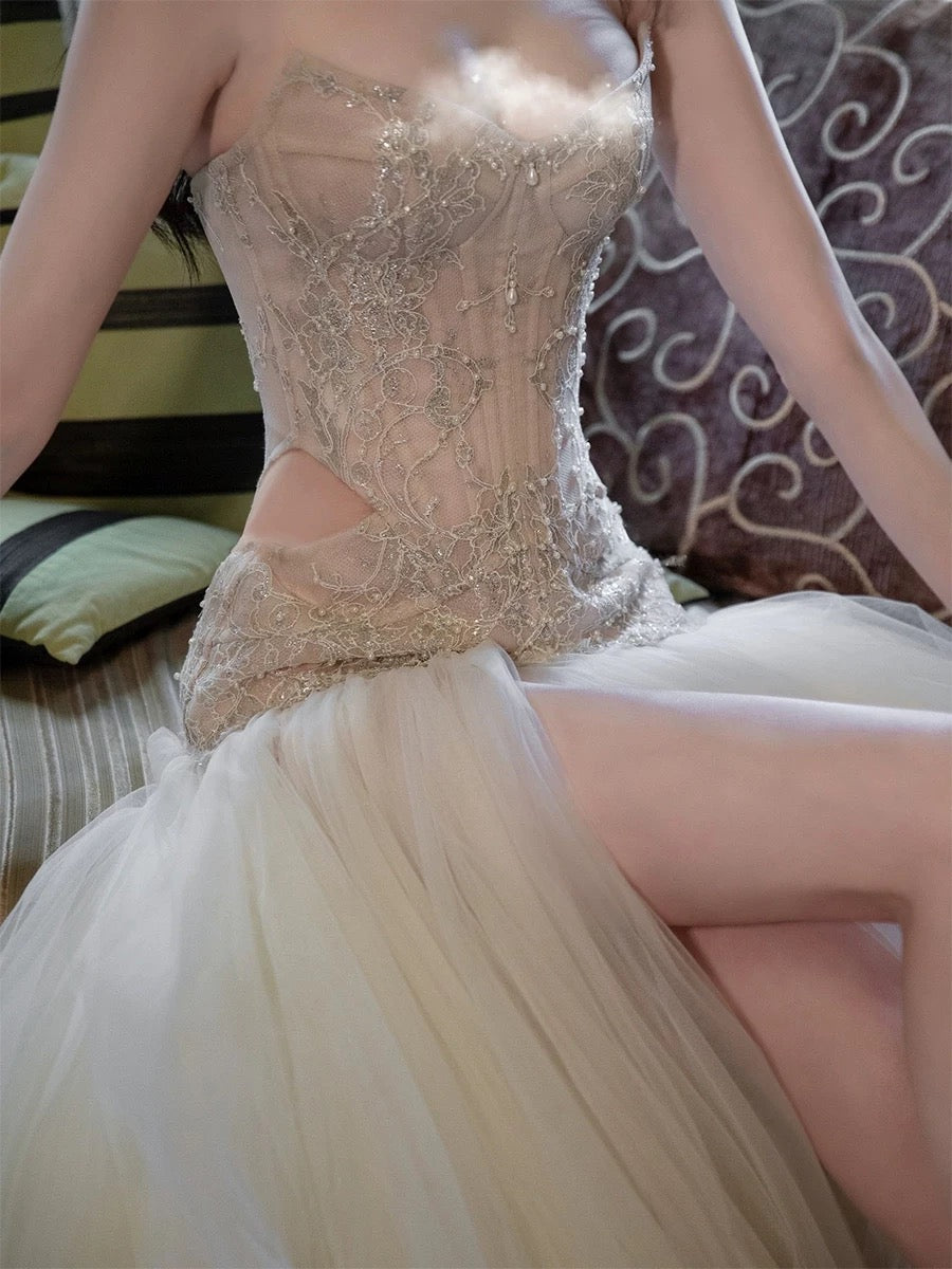 Classy Mermaid Sweetheart Long Tulle Beads Sequin Evening Dress Long Prom Dresses H2900