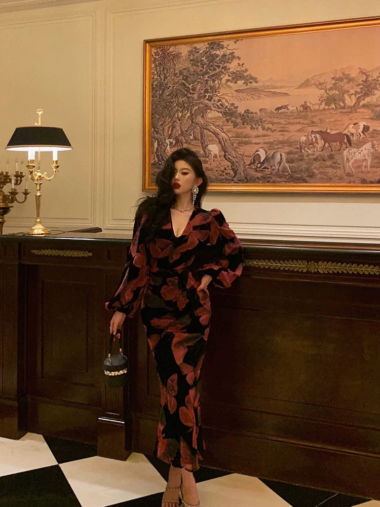 Classy Mermaid V Neckline Long Sleeves Black Velvet Pink Butterfly Prom Dresses Birthday Outfits SD690
