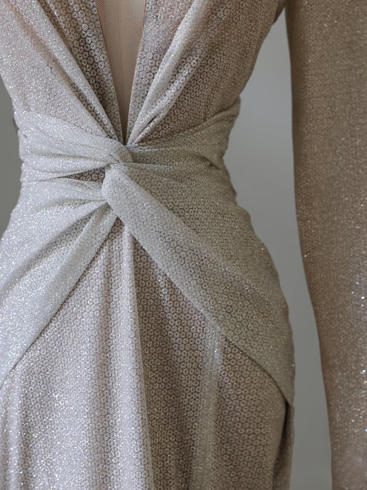 Classy Mermaid V Neckline Long Sleeves Sequin Ruffles Long Evening Dress Prom Dresses SD2499