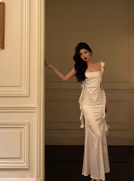 Classy Mermaid White Square Neck Long 18th Birthday Dress Party Gown 21st Birthday Outfits Birthday Dress Ideas For Women DP605