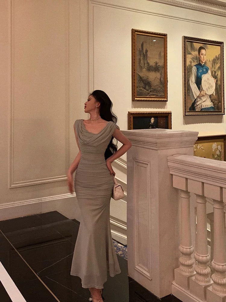 Classy Sheath Off The Shoulder Dusty Green Ruffles Prom Dresses Birthday Outfits SD694