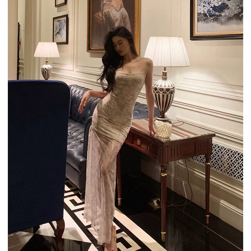 Classy Sheath Spaghetti Straps Floral Long Prom Dresses Birthday Outfits Evening Gown SD916