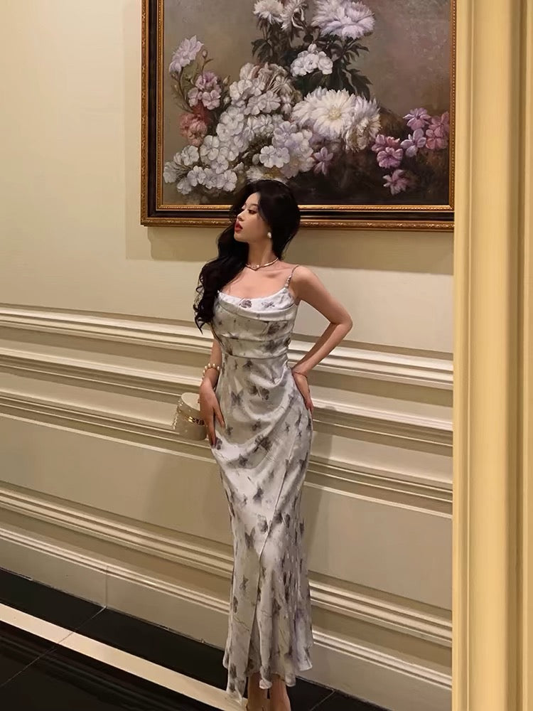 Classy Sheath Spaghetti Straps Floral Long Prom Dresses Birthday Outfits Evening Gown SD926