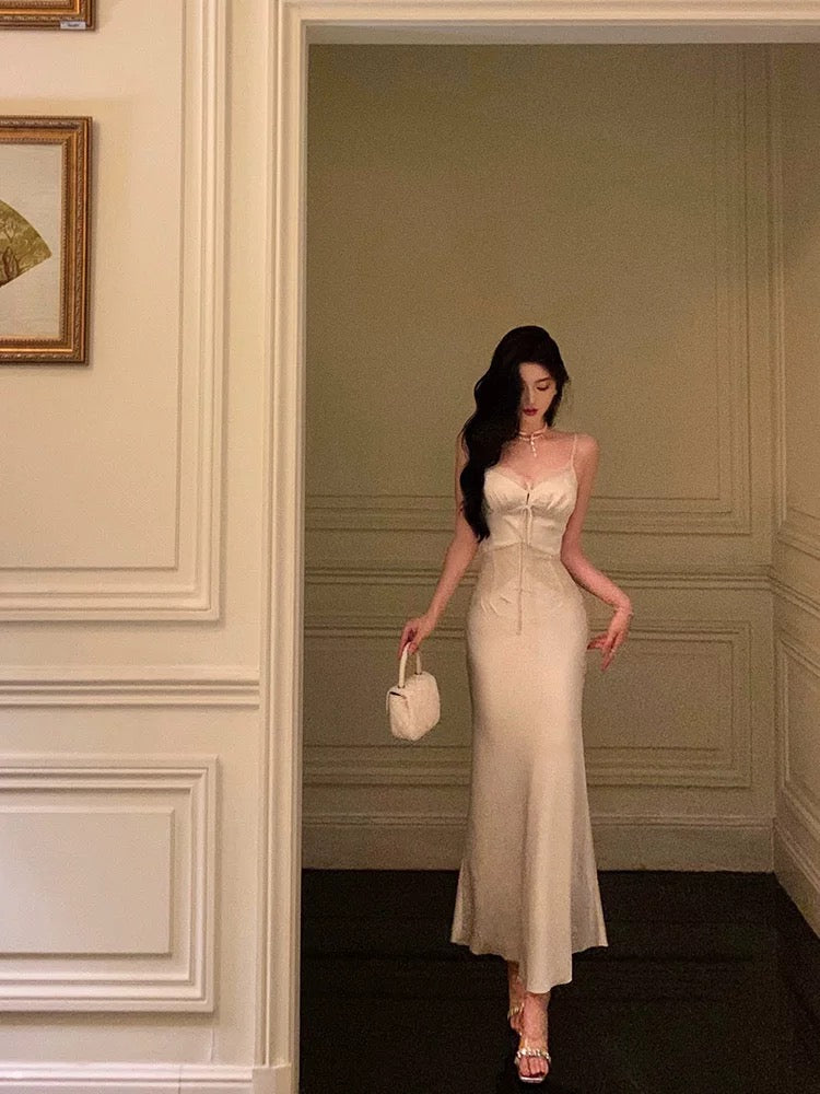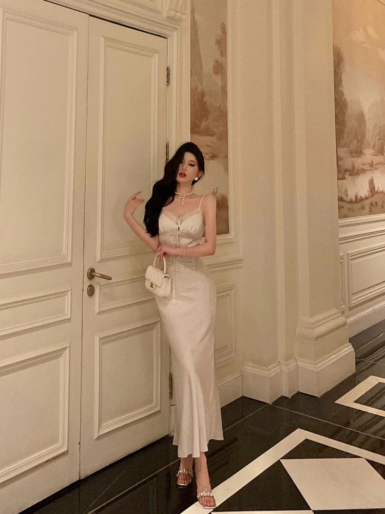 Classy Sheath Spaghetti Straps Slit Long Prom Dresses Birthday Outfits SD860