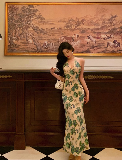 Classy Sheath V Neckline Green Floral Sleeveless 18th Birthday Dress Party Gown Birthday Outfits Birthday Dress Ideas For Women DP553