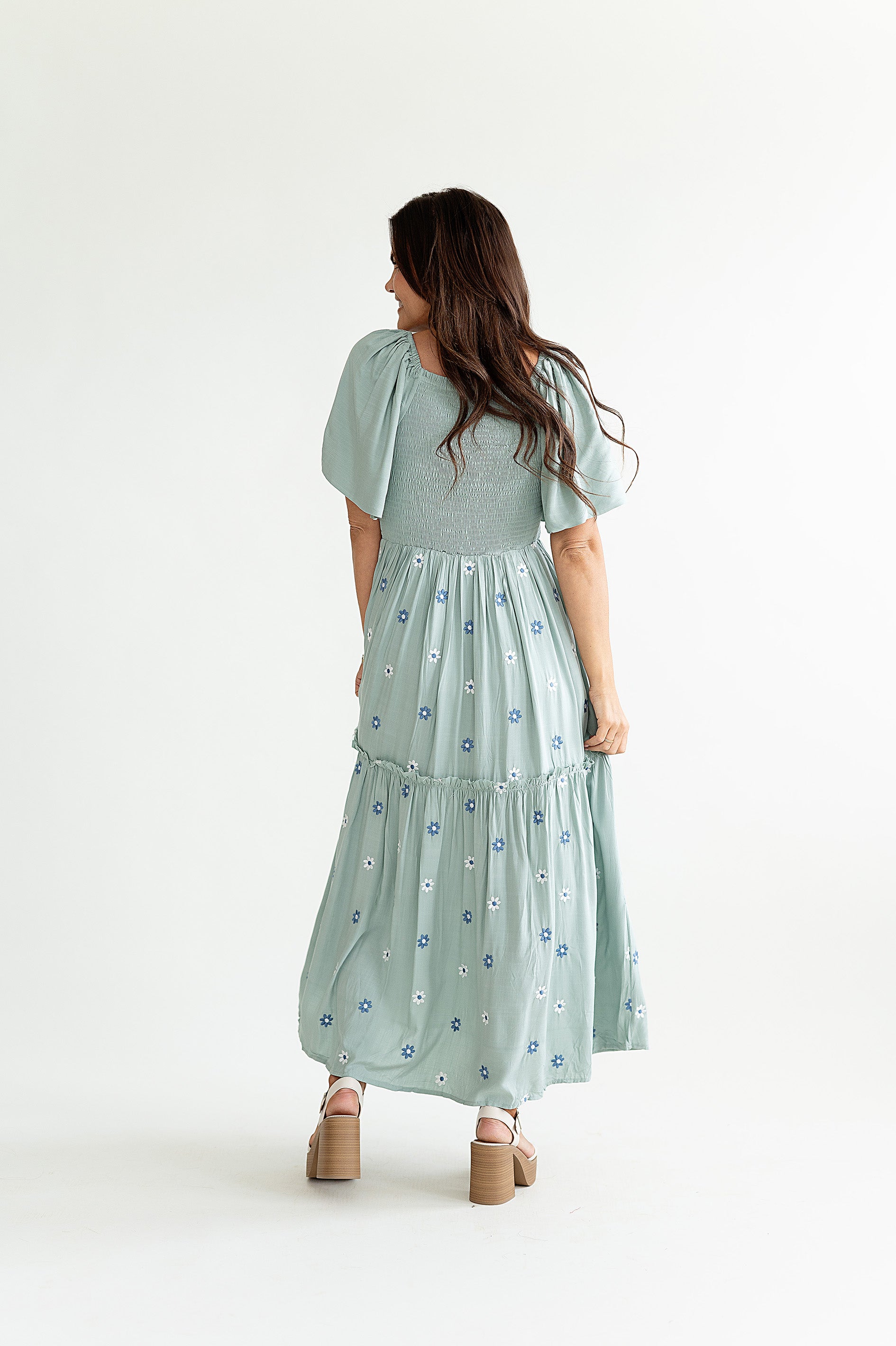 loveedsTM-Clementine Embroidered Dress in Dusty Blue