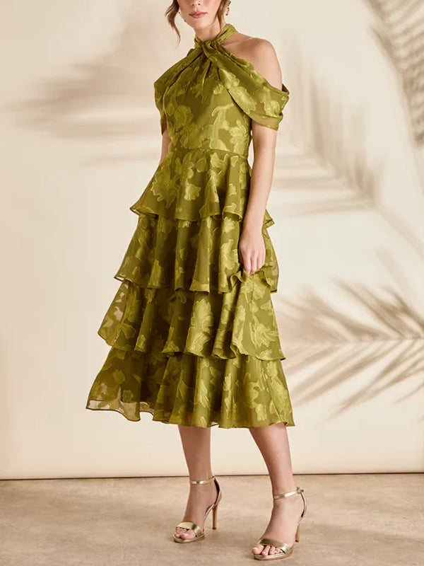 Cold Shoulder Chiffon Halter Midaxi Dress