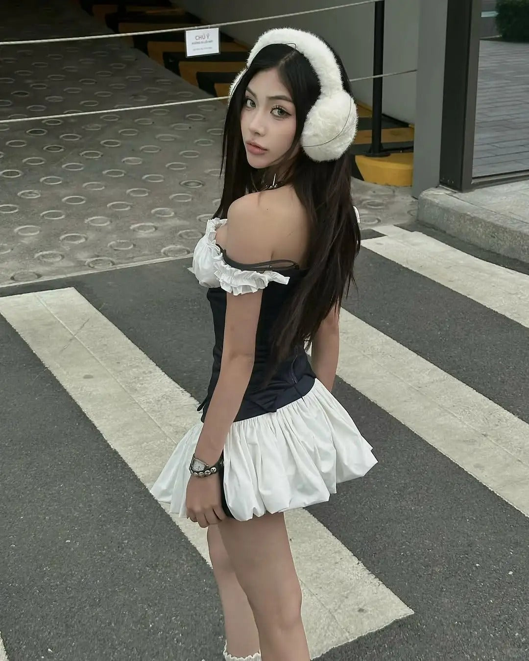 College Style Black And White Splicing Flower Bud Skirt 20th Birthday Homecoming Dress P3514