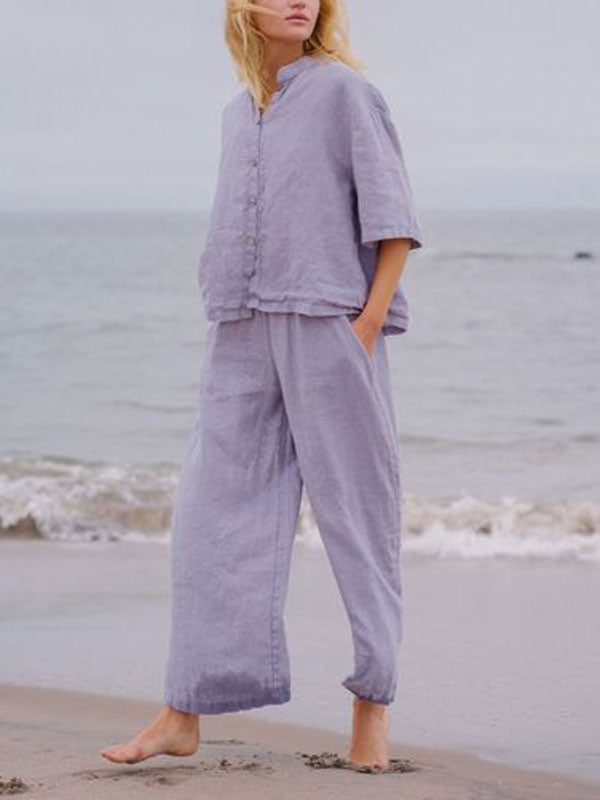 Comfortable Vacation Beach Cotton Linen Women's Sets