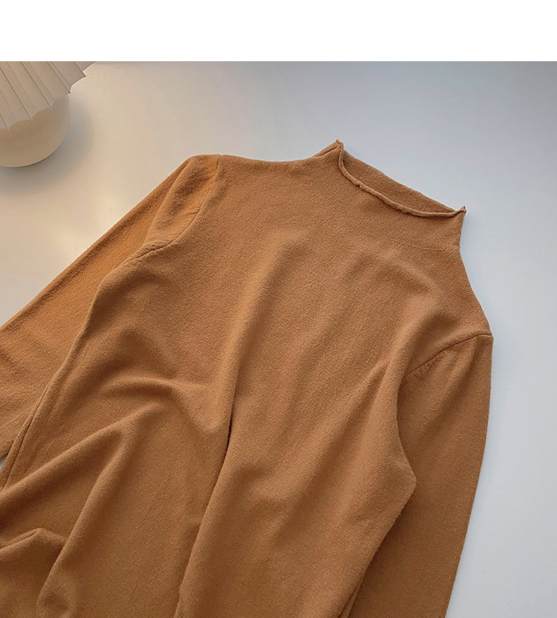 Commuter solid color Pullover half high neck long sleeve Knitted Top 6651