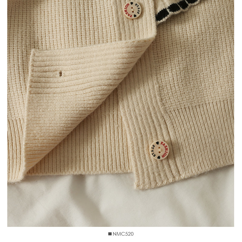 Contrast Ruffle V-neck single breasted loose thin sweater 1834