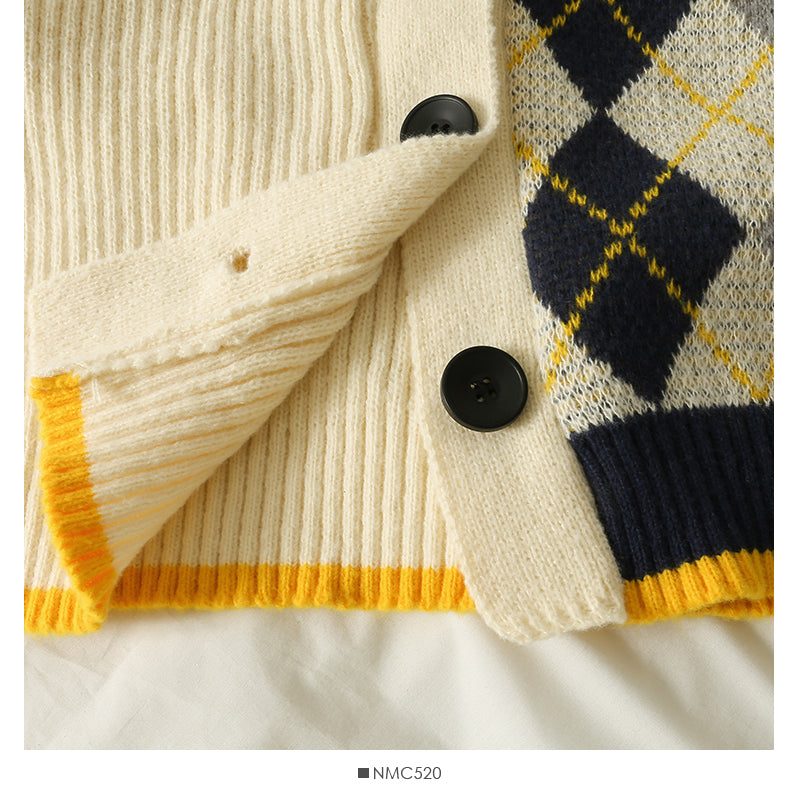 Contrast stitched diamond check single breasted low neck T-shirt 1840