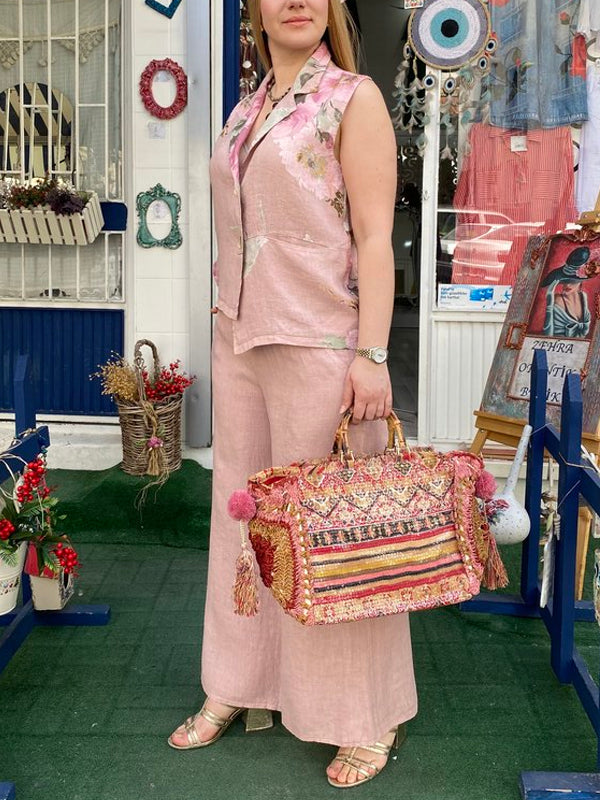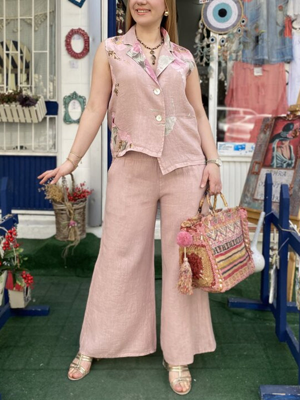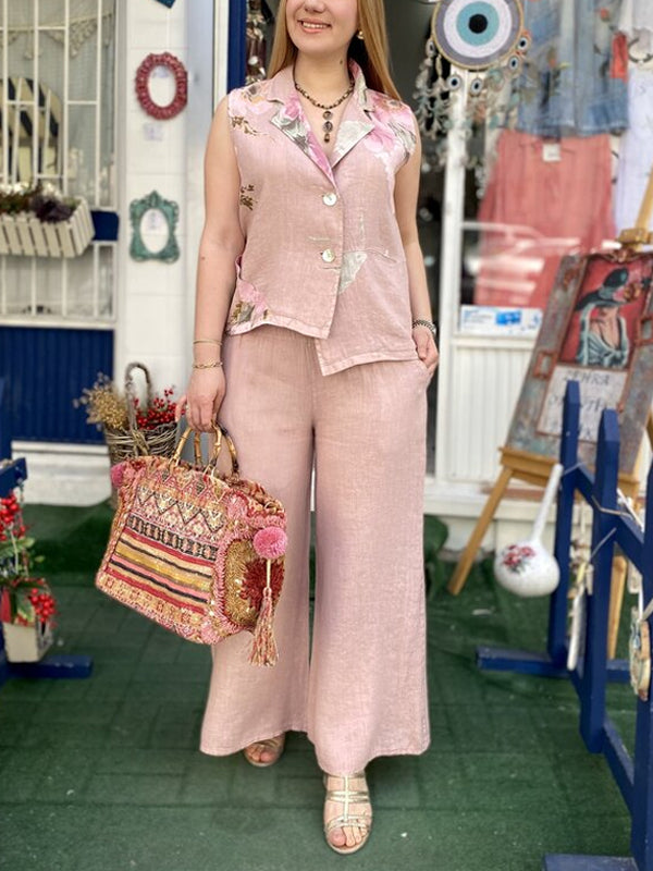 Cotton and Linen Printed Holiday Temperament Women's Suit