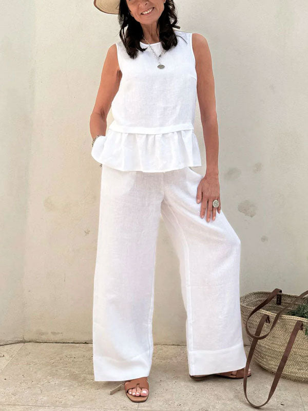 Cotton Linen Sleeveless Ruffled Ladies Sets