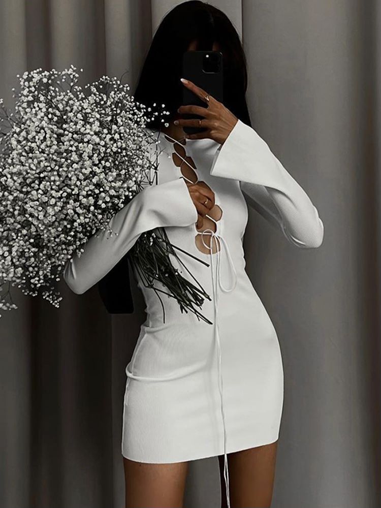 loveedsTM- Autumn Sexy Bandage Black Mini Dress for Women Fashion Outfits Party Club Long Sleeve Bodycon Dresses Vestido Knit