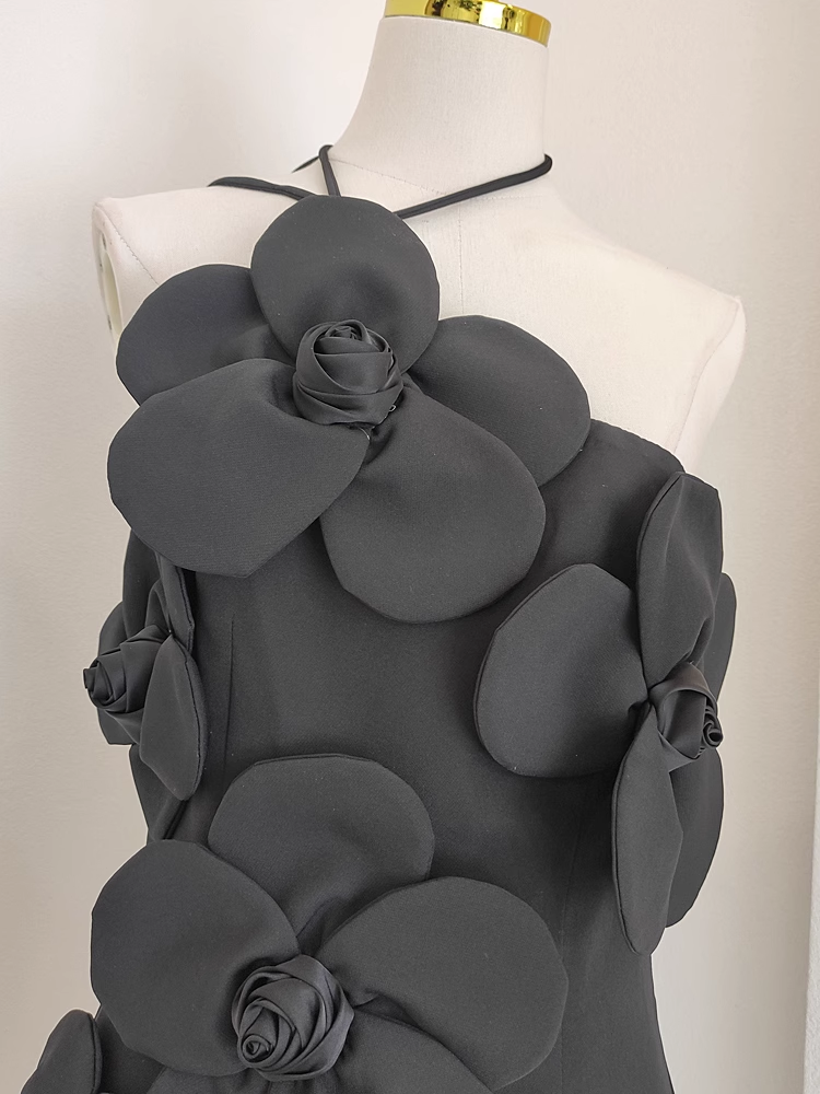 Cute A line Halter Black Flowers Vacation Dress Short Birthday Dresses SD178