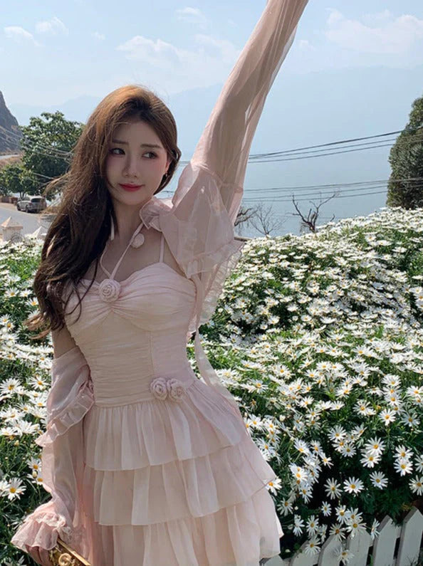 Cute A line Pink Chiffon Summer Short Homecoming Dress Hoco Dress Mini 18th Birthday Outfit Cocktail Dresses DP1862
