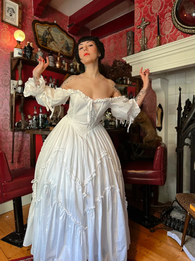 Cute A Line Puff White Satin Long Birthday Dress Evening Dress SH2798