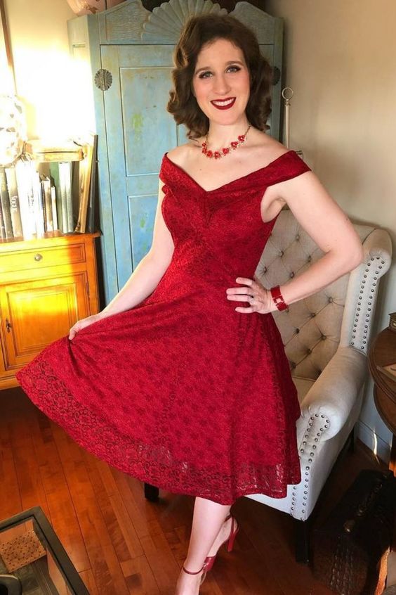 Cute A-line short pink lace party homecoming dress features with off the shoulder neckline and ribbon cg22635