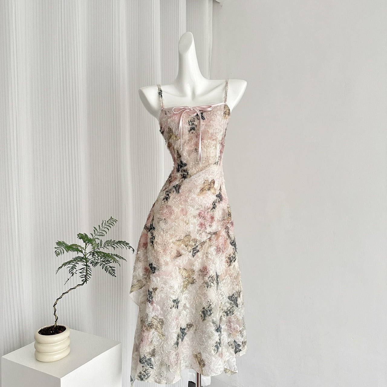 Cute A line Spaghetti Straps Pink Floral Lace Summer Dress Holiday Party Outfits For Women DP0018