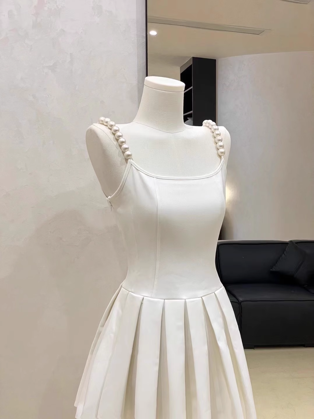 Cute A line Spaghetti Straps Ruffled White Women's Short Vacation Dresses SD183