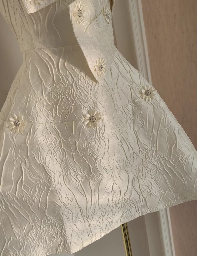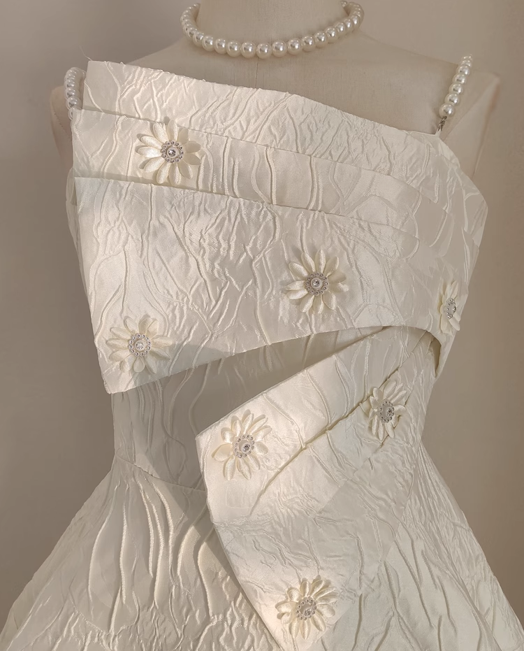 Cute A line Spaghetti Straps White Pearls Women Dress Short Birthday Outfits SD134