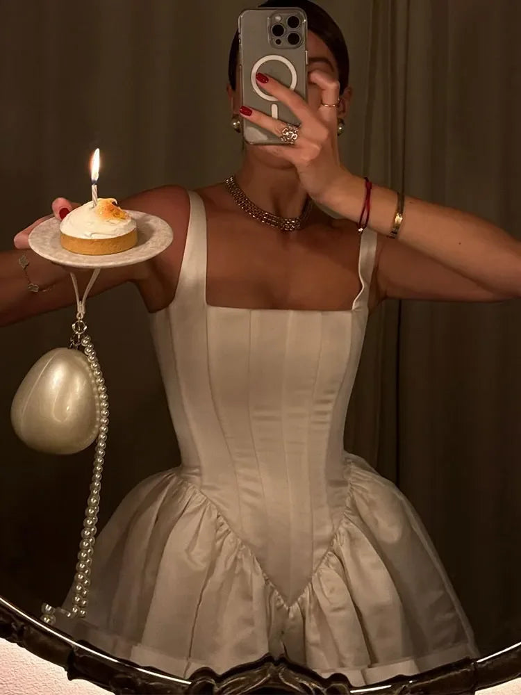 Cute A Line Straps Corset Ivory Satin Short Homecoming Dress Birthday Dress SH1922