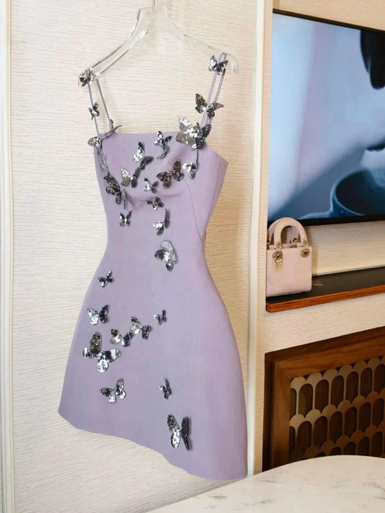 Cute A line Straps Satin Liac Short Summer Birthday Dress Hoco Dress Mini Birthday Outfit 23rd Birthday Party Dresses DP1733