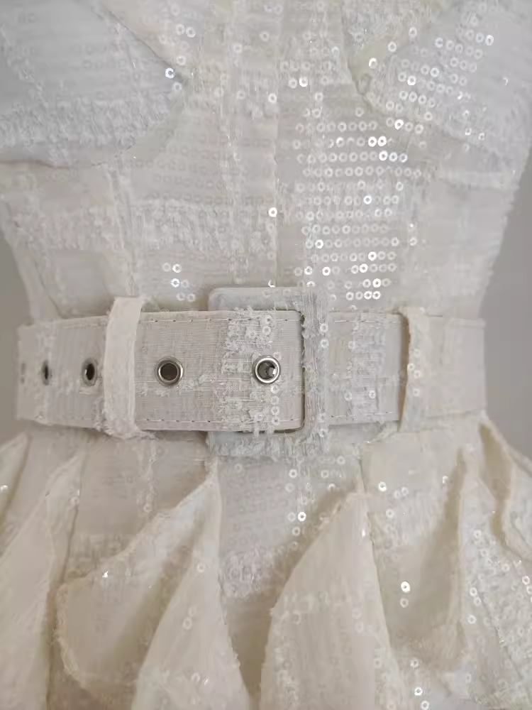 Cute A line Straps White Sequin Travel Vacation Dresses Short Birthday Dress SD165