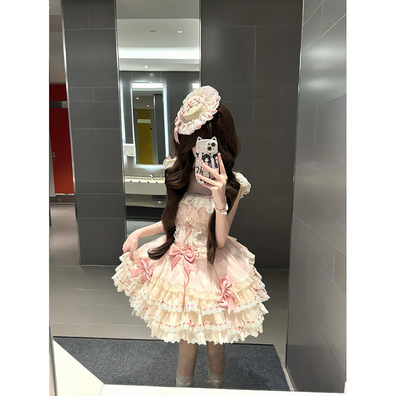Cute Ball Gown Square Neck Pink Short Lace Summer 18th Birthday Dress Lolita Dress Birthday Outfits W1249