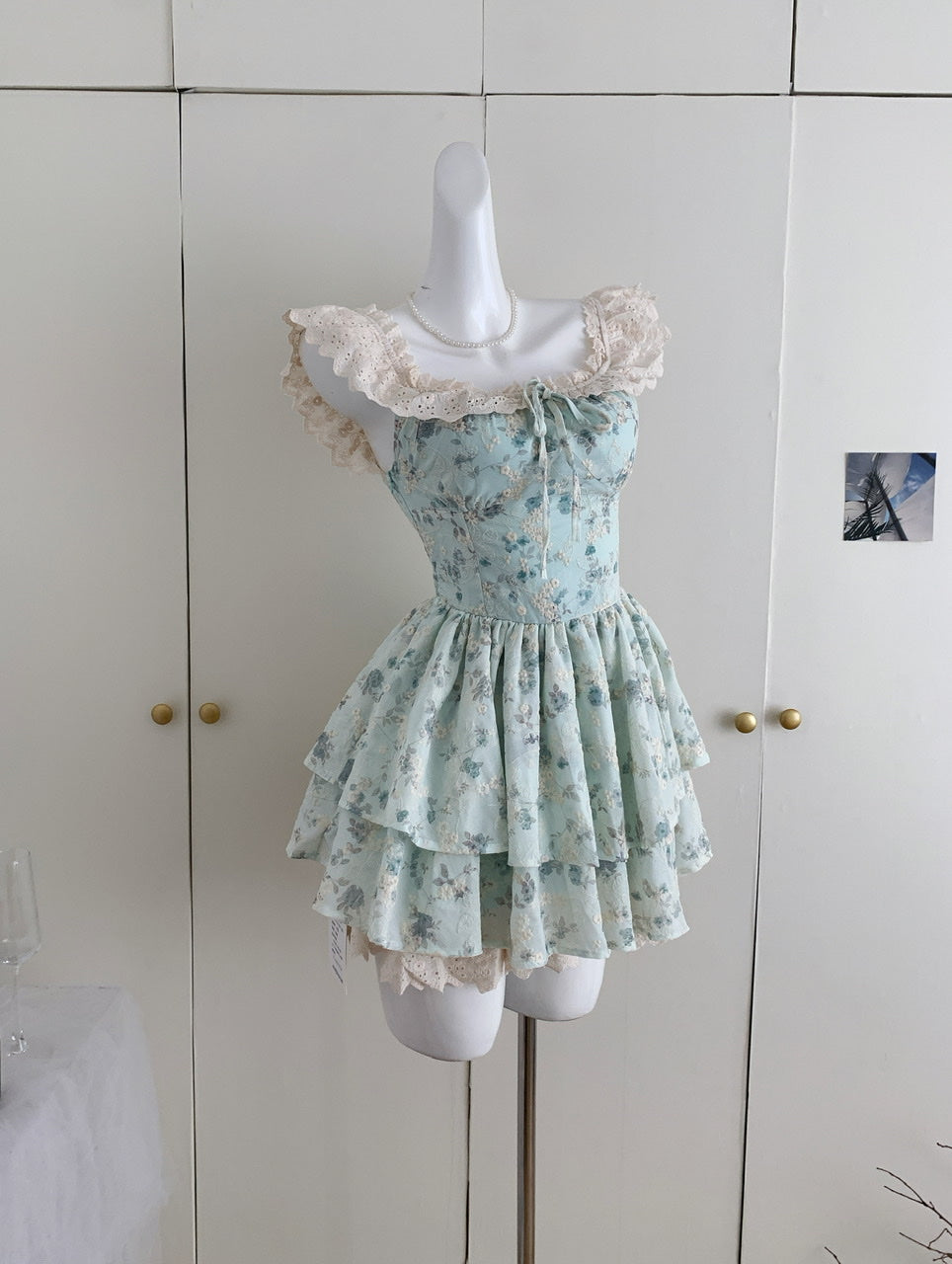 Cute Ball Gown Square Satin Floral Pink Short Summer Dress Holiday Party Outfits For Women DP1406