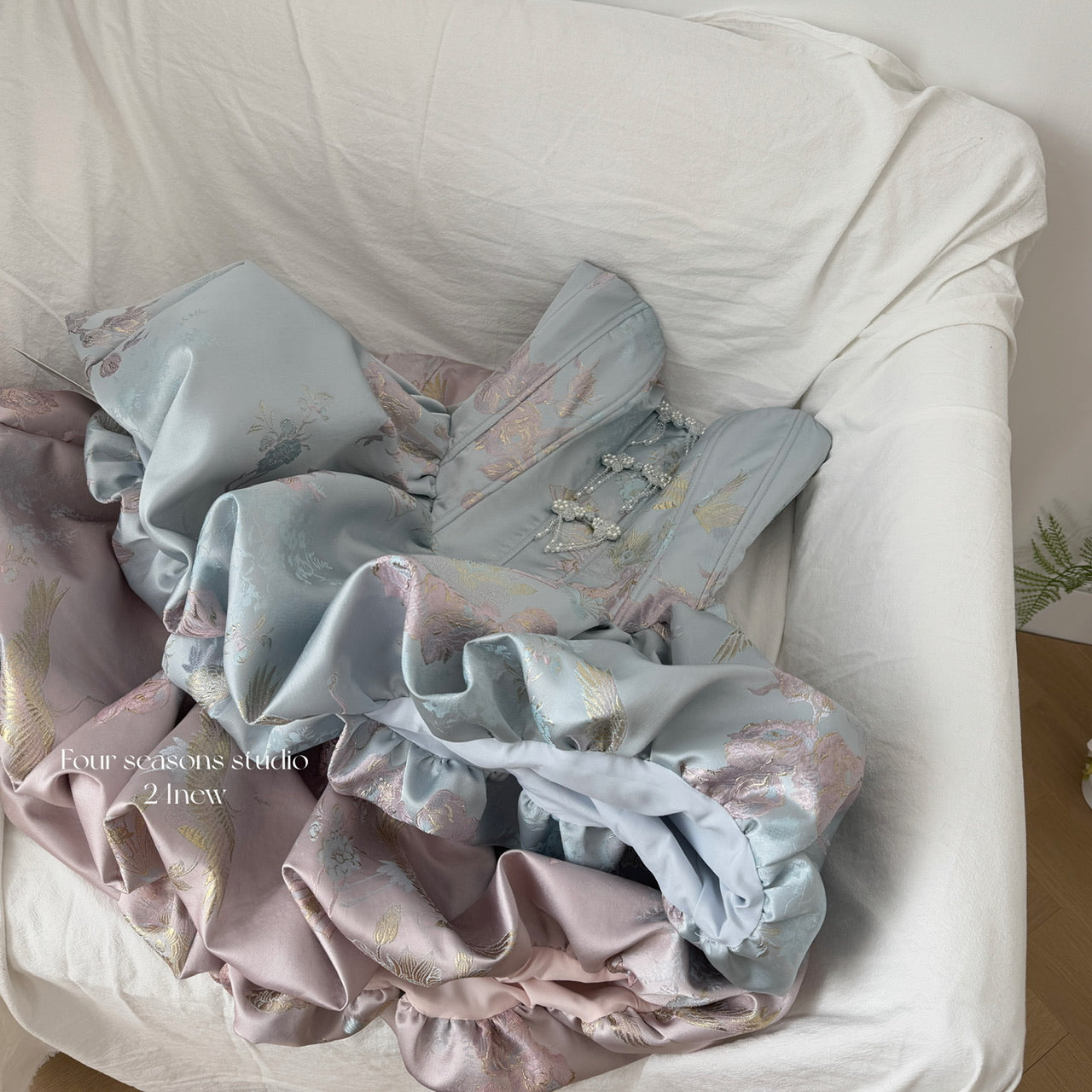 Cute Ball Gown Strapless Satin Floral Pink Short Summer Dress Holiday Party Outfits For Women DP0097