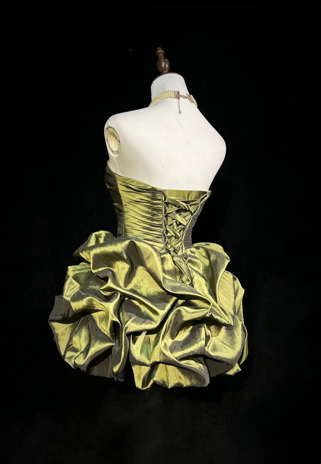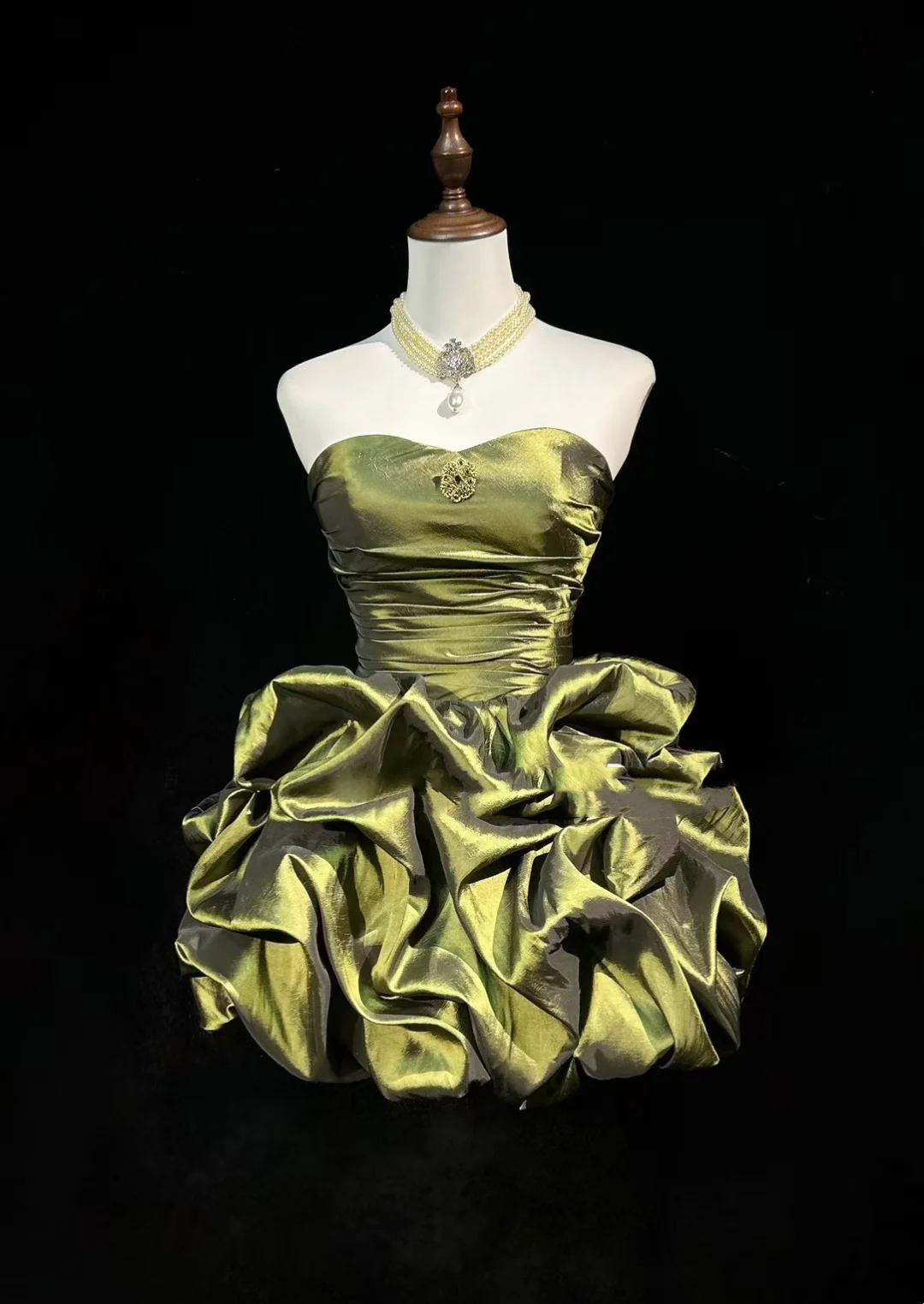 Cute Ball Gown Sweetheart Taffeta Olive Green Sleeveless Mini Short Formal 8th Grade Homecoming Dresses Summer Middle School Hoco Dress Homecoming Outfits DH650