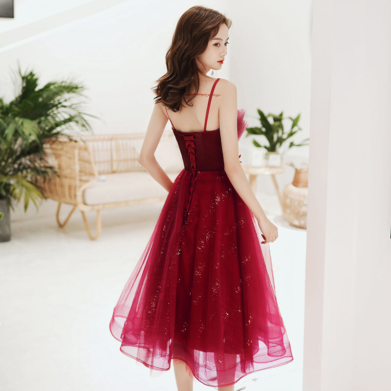 Cute burgundy tulle short prom dress homecoming dress 8252