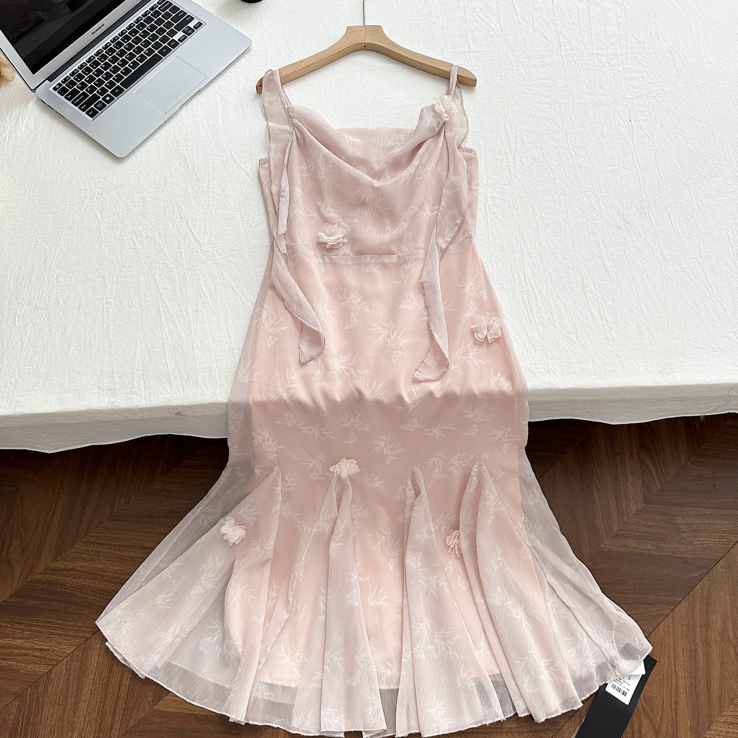Cute Mermaid Straps Floral Pink Lace Long Summer Dress For Women DP0026
