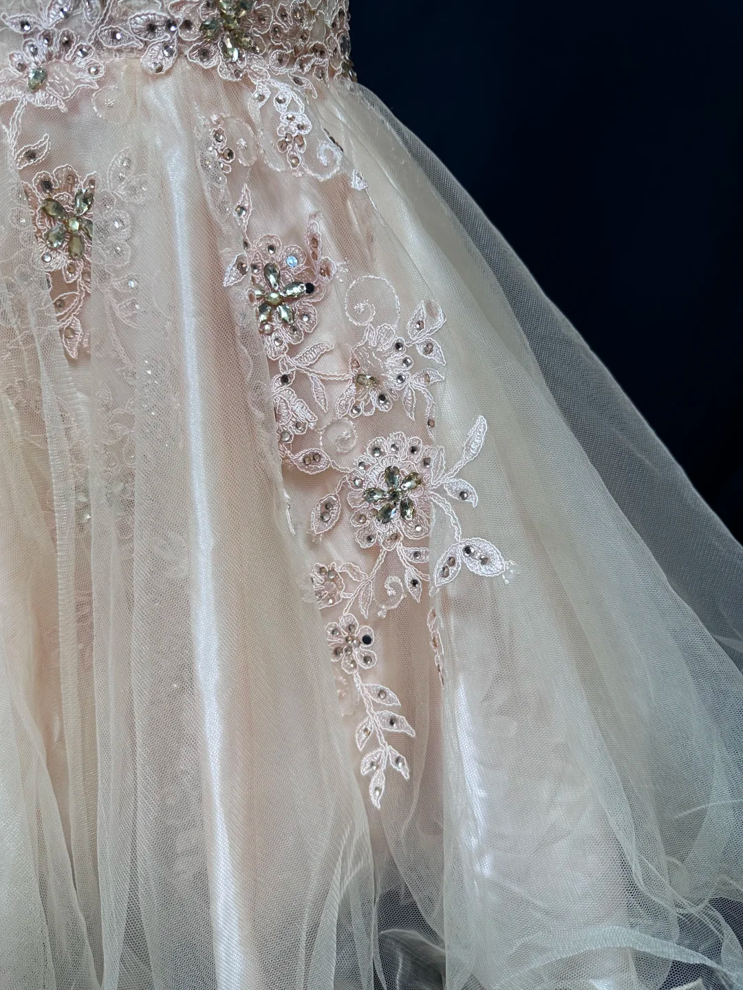 Cute Peach Powder Lace Beaded Mini Birthday Dress Strapless A Line Homecoming Dress S430