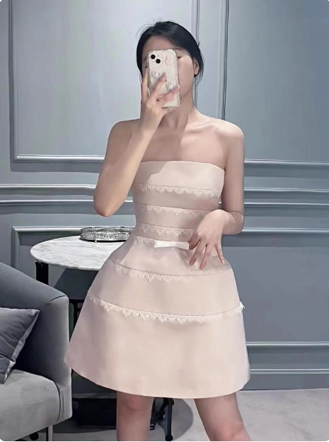 Cute Pink Suspender Satin Lace 17th Birthday Homecoming Dress P3964