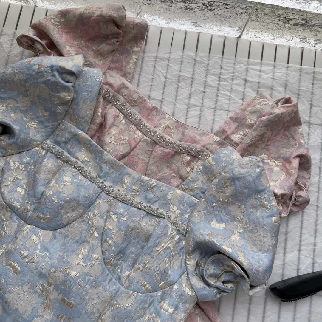 Cute Satin Print Floral Short Sleeves A Line Birthday Outfits Blue Homecoming Dress S403