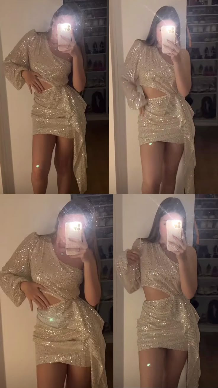 Cute Sheath One Shoulder Sequin Champagne Short Homecoming Dress Summer Middle School Formal Hoco Dresses Cocktail Dress Birthday Outfits W0588