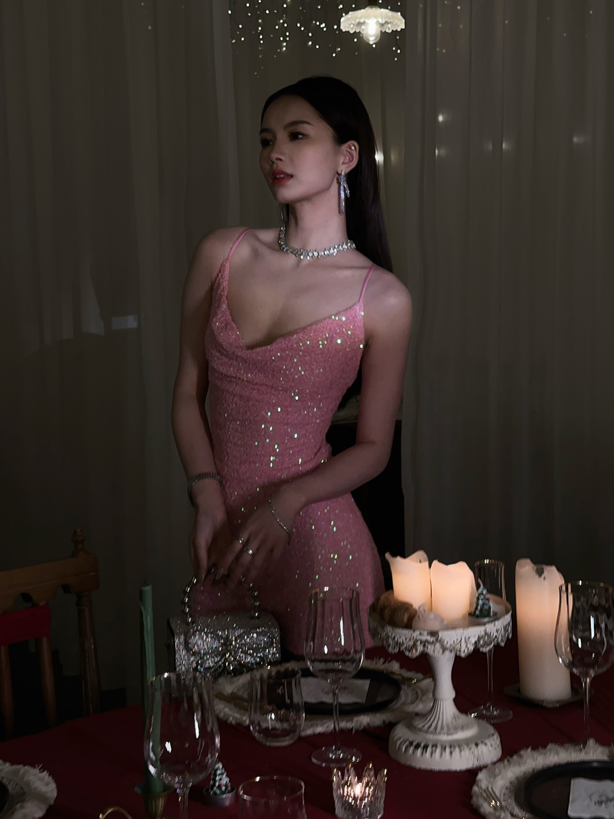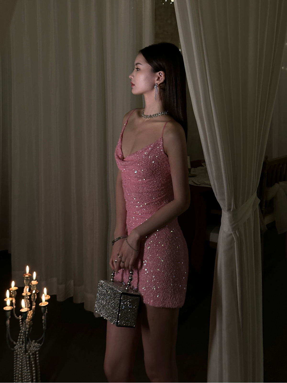 Cute Sheath Spaghetti Straps Pink Sequin Mini Short Formal 8th Grade Homecoming Dresses Summer Middle School Hoco Dress Homecoming Outfits DH1092