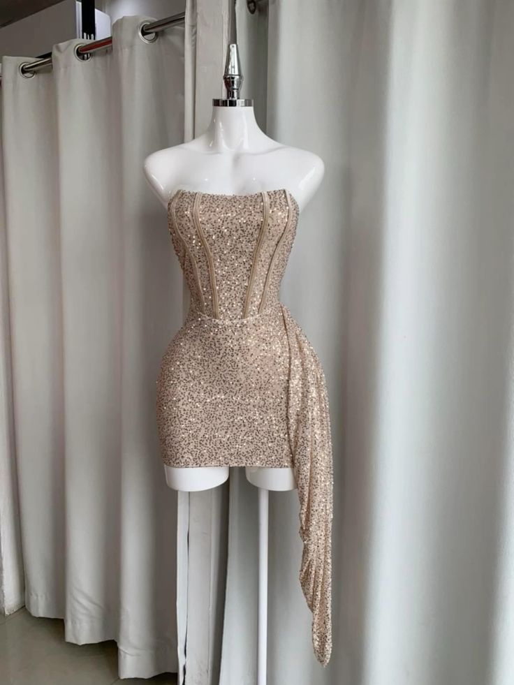 Cute Sheath Strapless Sequin Formal 8th Grade Homecoming Dresses Short Summer Middle School Hoco Dress Black Homecoming Outfits DH17