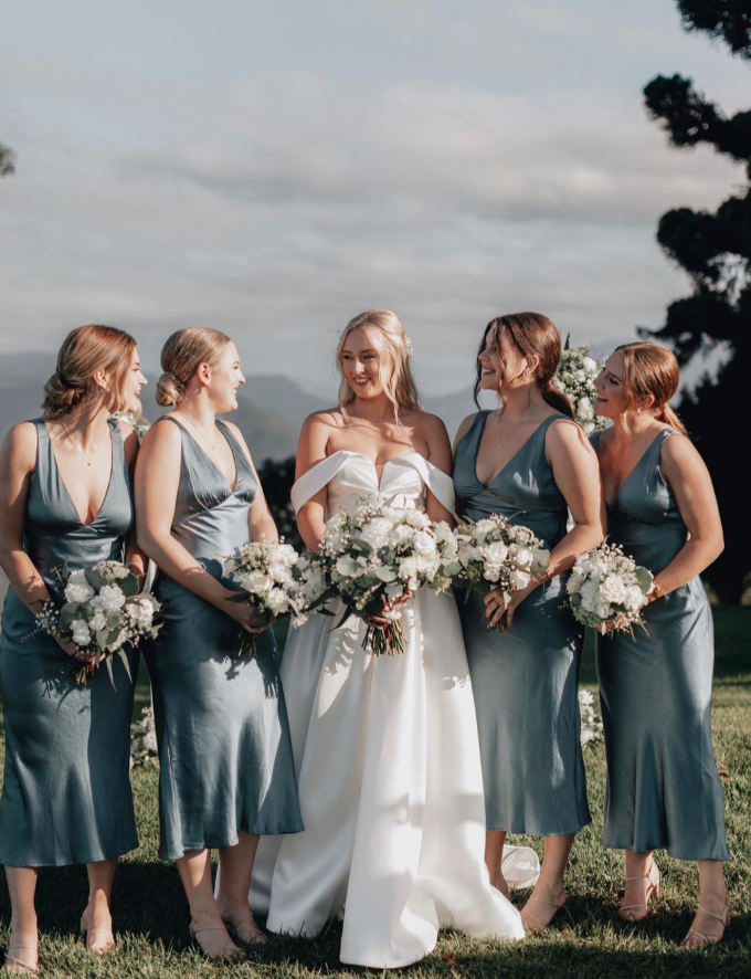 Cute Sheath V Neck Blue Satin Bridesmaid Dress Evening Dress SH2833