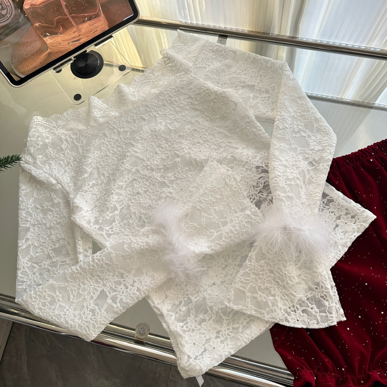 Cute Spaghetti Straps Red Ruffles Velvet Summer Dress 3 Pieces Holiday Party Outfits For Women DP0092