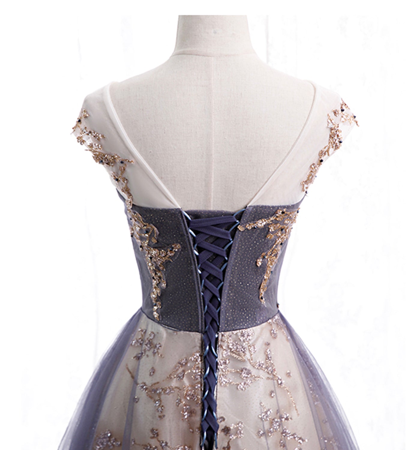 Cute tulle sequins long prom dress evening dress