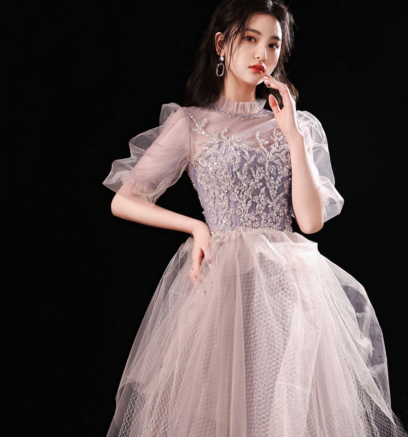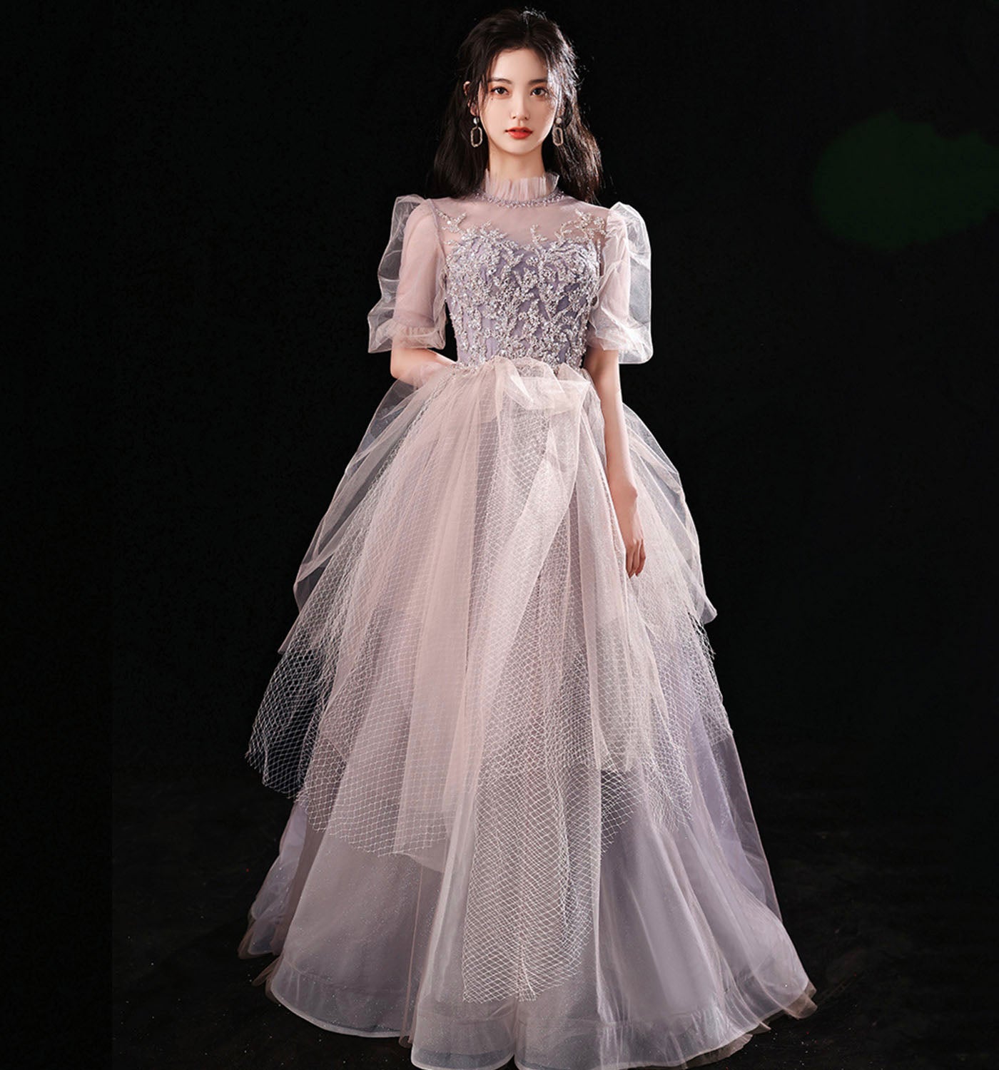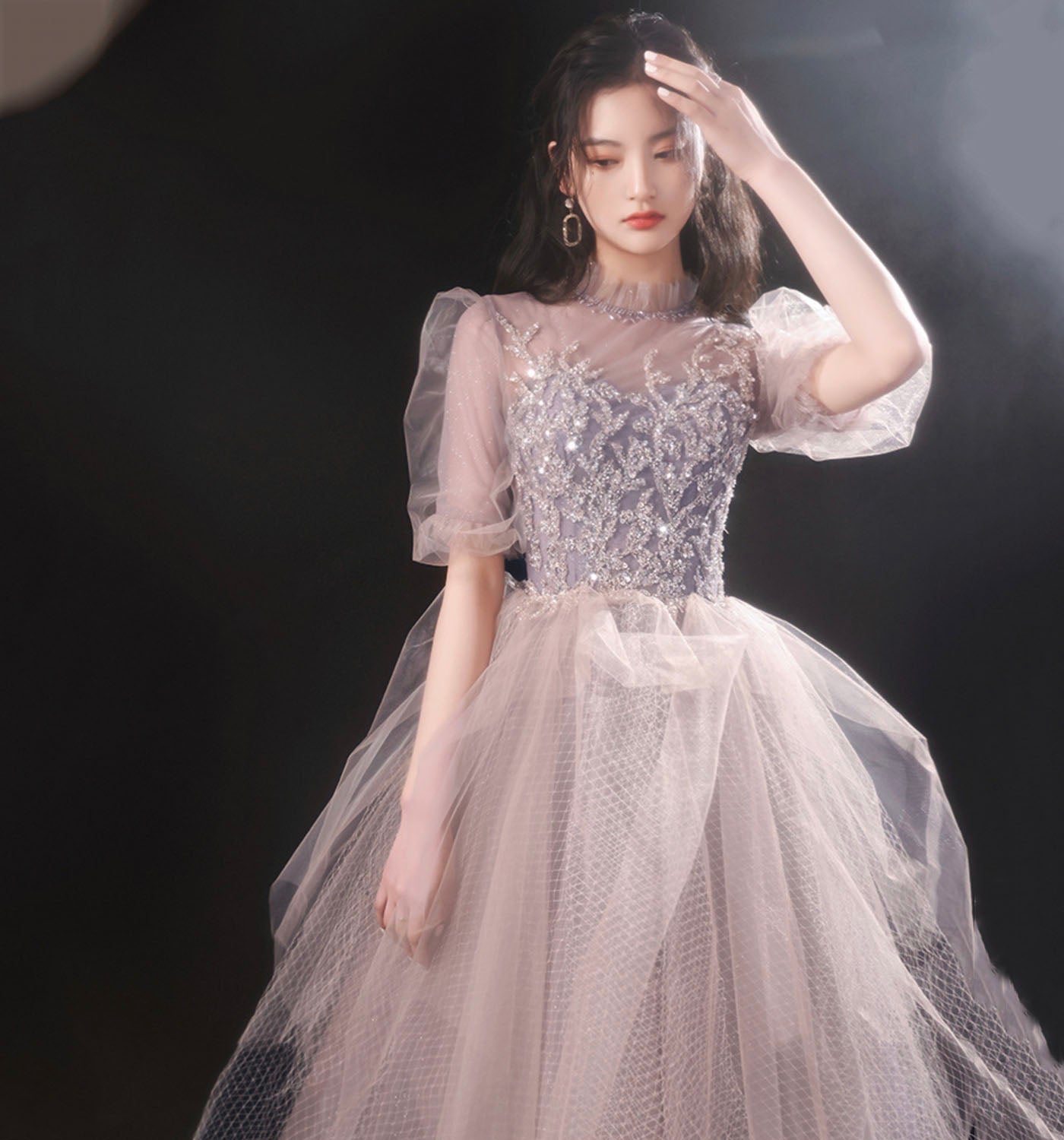 Cute tulle sequins long prom dress fashion girl dress 8972