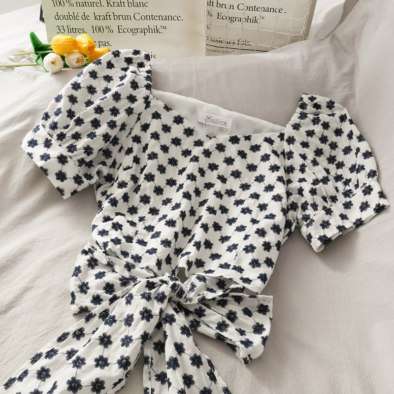 Cute V-neckline daisy top crop tops