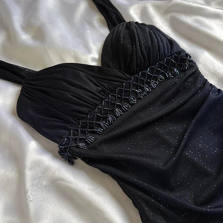 Dark blue shiny elegant exquisite beaded long chiffon prom dress, evening dress, party dress, graduation dress gh3506